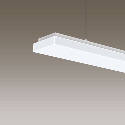 35.2W LED, 4993 Lumen, 142 Lumen/Watt, 4000 Kelvin. L=1157mm, l=140mm, A=59mm, CRI>90, UGR<25, IP40. Compartiment LED IP50. Classe d'efficacité énergétique de la source lumineuse: C. Pour montage au plafond. Écran opale en verre acrylique. Flux lumineux moyen. Avec appareillage électronique et alimentation de secours intégrée. Avec commande DALI. Suspension à câbles en acier 1 m, réglable en hauteur. 1.15 m de câble de raccordement blanc inclus.