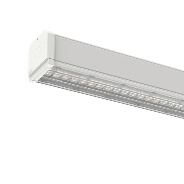 35W LED, 6070 Lumen, 174 Lumen/Watt, 4000 Kelvin. L=1000mm, CRI>80, UGR<25, IP21. IP50 alloggiamento della lampada. Fascio di luce simmetrico, fascio ampio, emissione di luce diretto. Efficienza energetica della sorgente luminosa: B. La lunga durata dei LED, fino a 100.000 h. Tolleranza colore di < 3 SDCM. Lente da PMMA trasparente. Alloggiamento in acciaio, bianco traffico. Semplice aggancio per il contatto elettrico e fissaggio meccanico nel sistema di canali NEXON. Con reattore elettronico. Con controllo DALI.