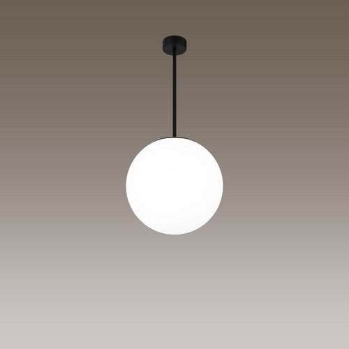 33.4W LED, 3997 Lumen, 120 Lumen/Watt, 3000 Kelvin. Ø=300mm, CRI>90, UGR<22, IP20. Lampenraum insektendicht. Energieeffizienzklasse der Lichtquelle: D. Photobiologische Sicherheit: RG0. Lichtleistung mittel. Für Deckenmontage. Kugelblende aus Kunststoff opal matt. Gehäuse, Baldachin und Pendelrohr schwarz matt. Pendelrohr 1 m, mit Kugelgelenk für Selbstnivellierung bis 5°, bauseitig kürzbar. Mit elektronischem Betriebsgerät. Mit DALI-Steuerung.