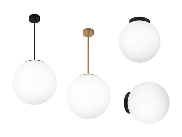 33.4W LED, 3997 Lumen, 120 Lumen/Watt, 3000 Kelvin. Ø=300mm, CRI>90, UGR<22, IP20. Lampenraum insektendicht. Energieeffizienzklasse der Lichtquelle: D. Photobiologische Sicherheit: RG0. Lichtleistung mittel. Für Deckenmontage. Kugelblende aus Kunststoff opal matt. Gehäuse, Baldachin und Pendelrohr schwarz matt. Pendelrohr 1 m, mit Kugelgelenk für Selbstnivellierung, bauseitig kürzbar. Mit elektronischem Betriebsgerät. Mit DALI-Steuerung.