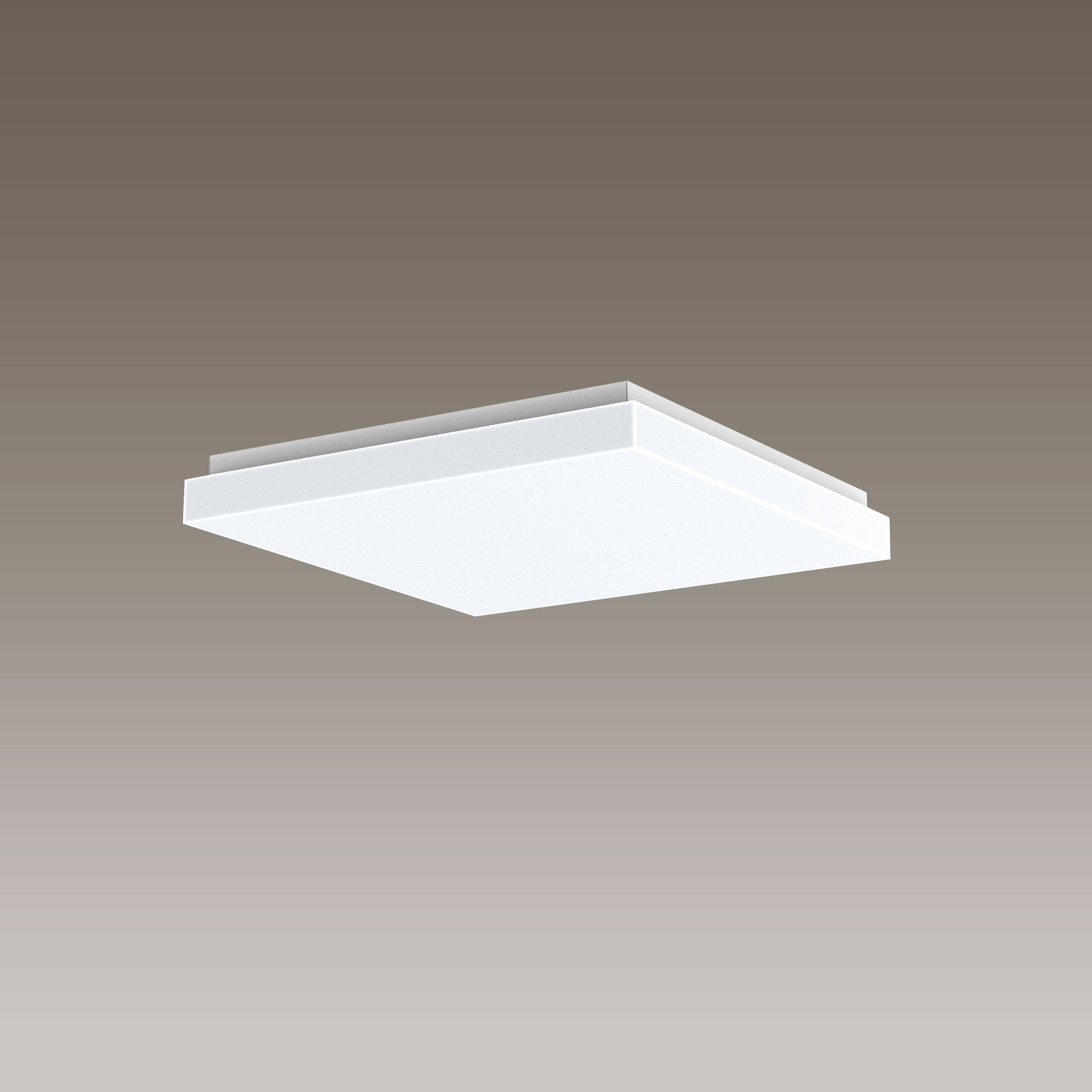 IP40. Für Deckenmontage. 420 x 420 mm. Blende aus Acrylglas opal. Lichtleistung mittel oder tief.